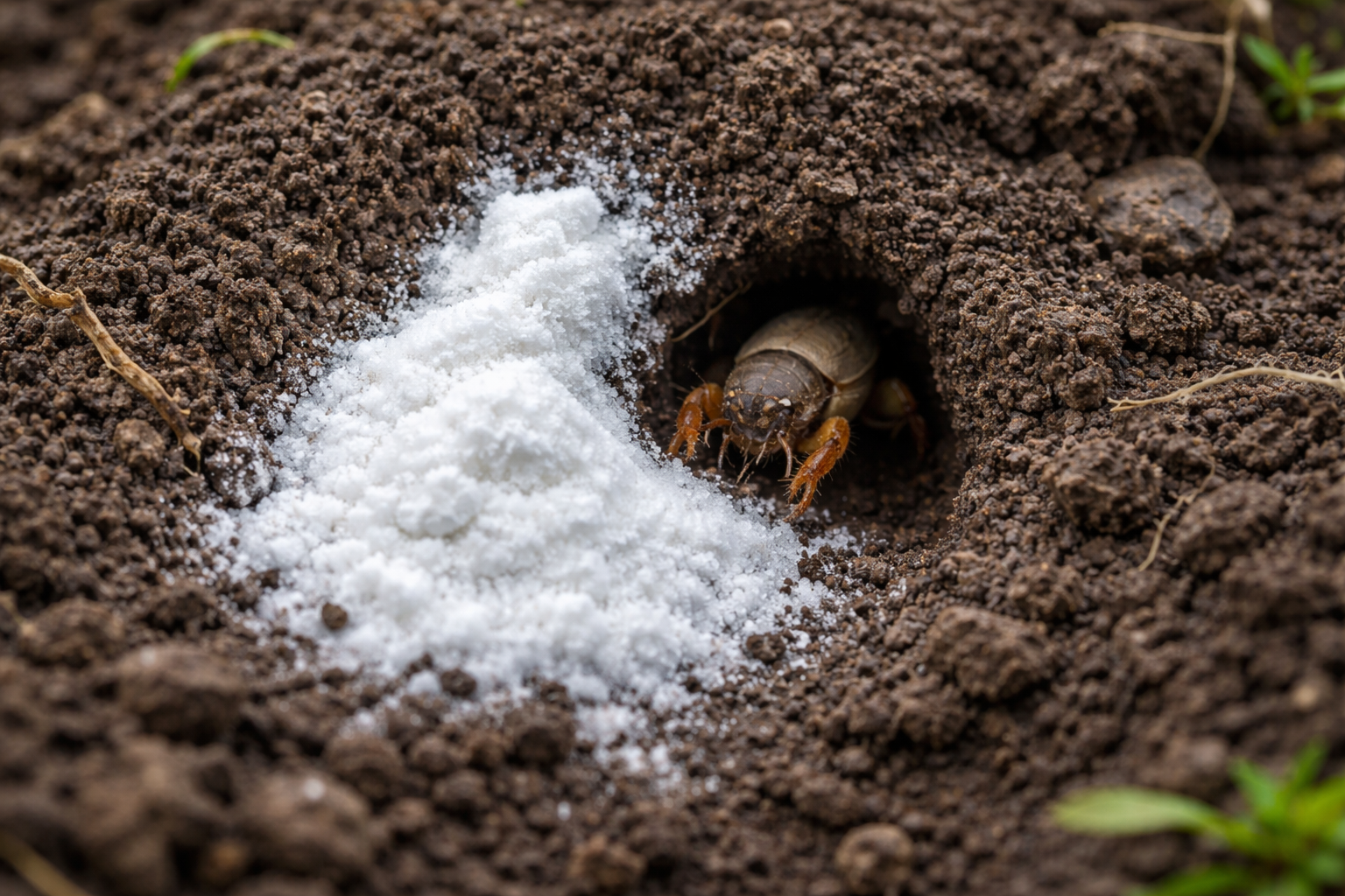 Hlavní tajná nuance: prášek před ošetřením nikdy neřeďte ve vodě, sypte ho striktně v suché formě přímo do nory a vlhkost přidávejte pouze nahoře, abyste v půdě vytvořili odolnou alkalickou bariéru.