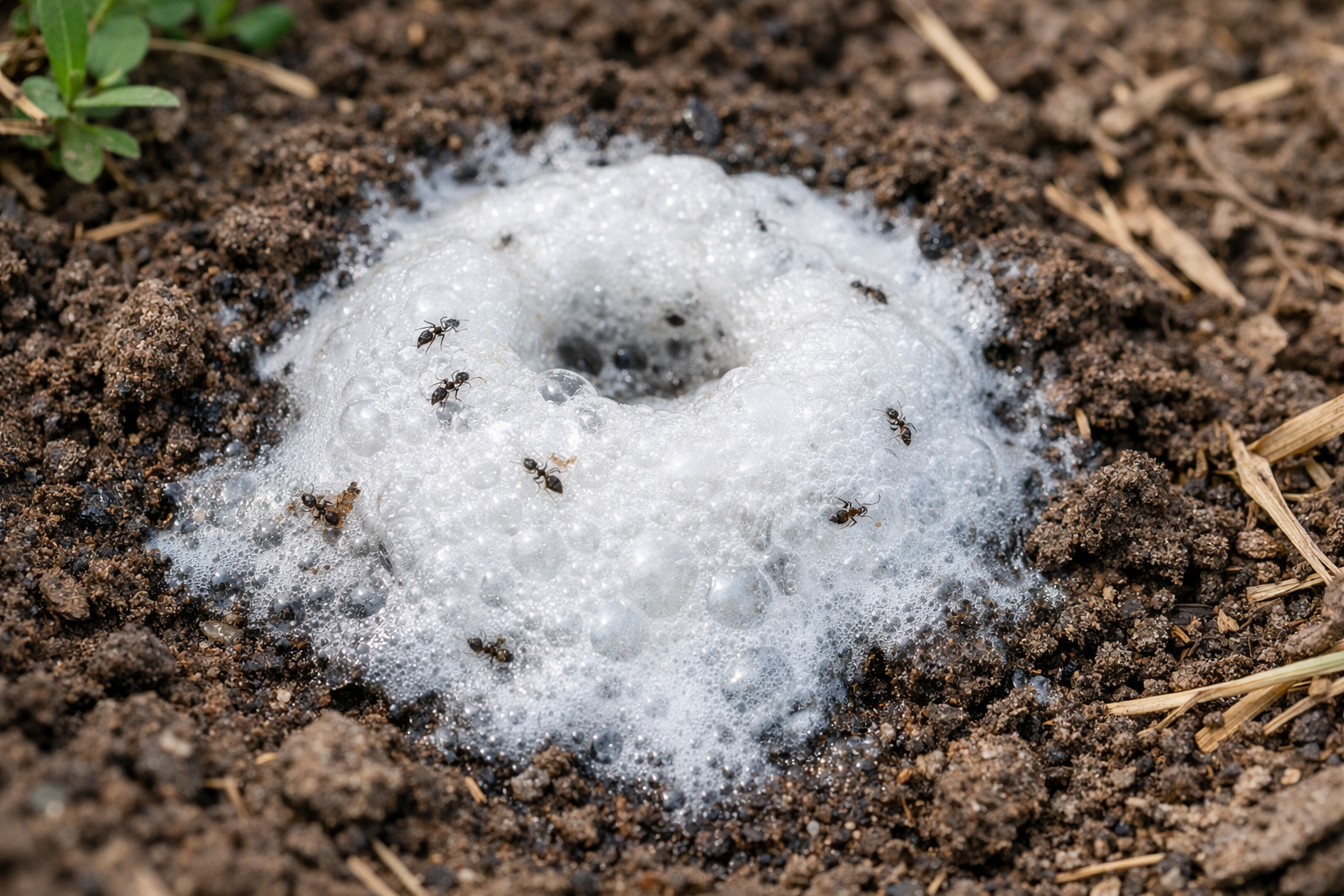 Hlavní tajná nuance úspěchu spočívá v prudké chemické reakci těchto dvou složek přímo uvnitř mraveniště. Syčící pěna škůdce nejen vyplaší, ale okamžitě pronikne do hlubokých chodeb a dostane se až do míst, kde se mravenci ukrývají. mravenčí kamarád.