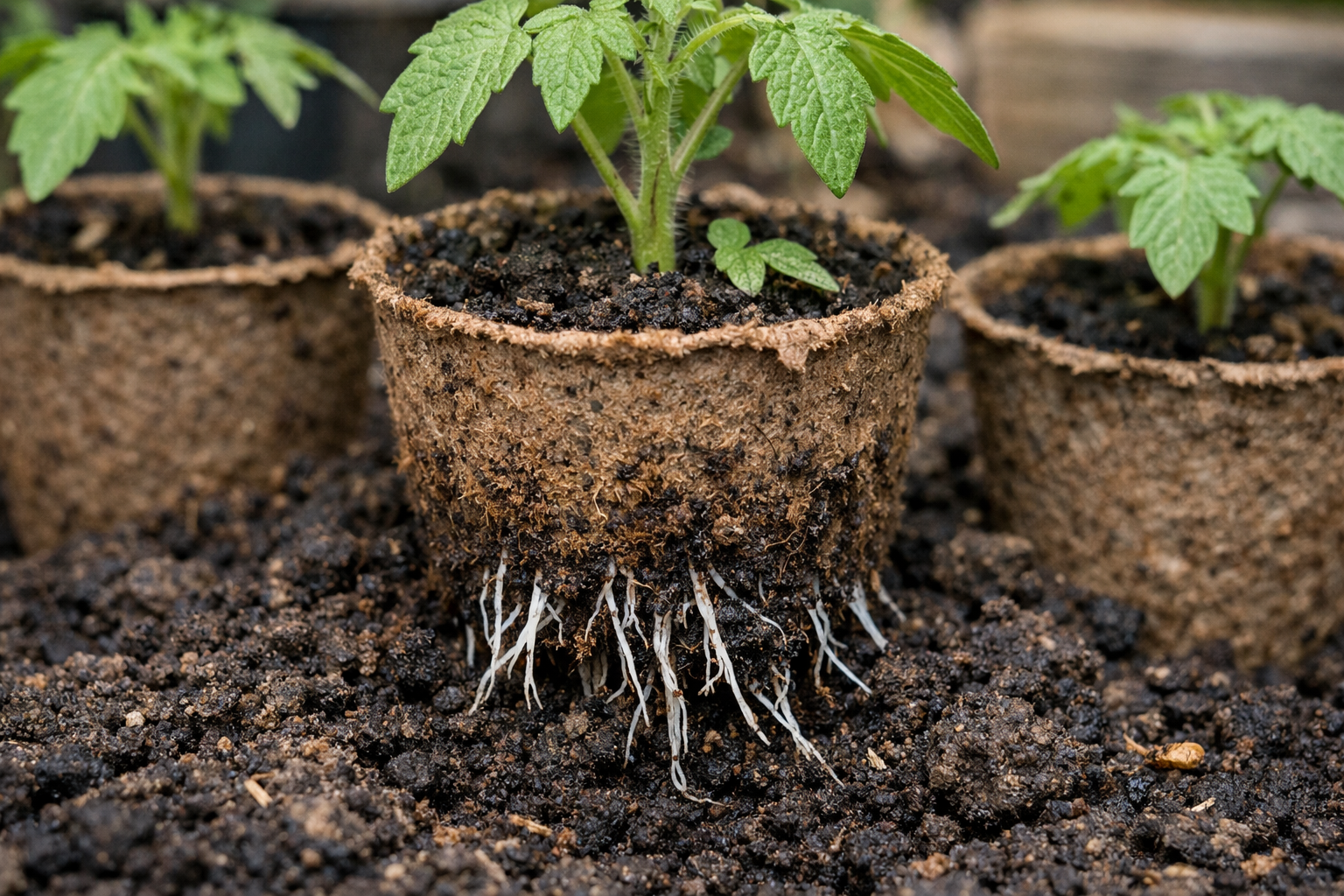 Zvláštní pozornost je třeba věnovat hloubce výsadby. Rajčata výborně vytvářejí další kořeny na stonku, takže při jejich vyzvedávání do ekologických nádob je lze mírně zahrabat. To zajistí keři dodatečnou stabilitu a silnou výživu v budoucnu.