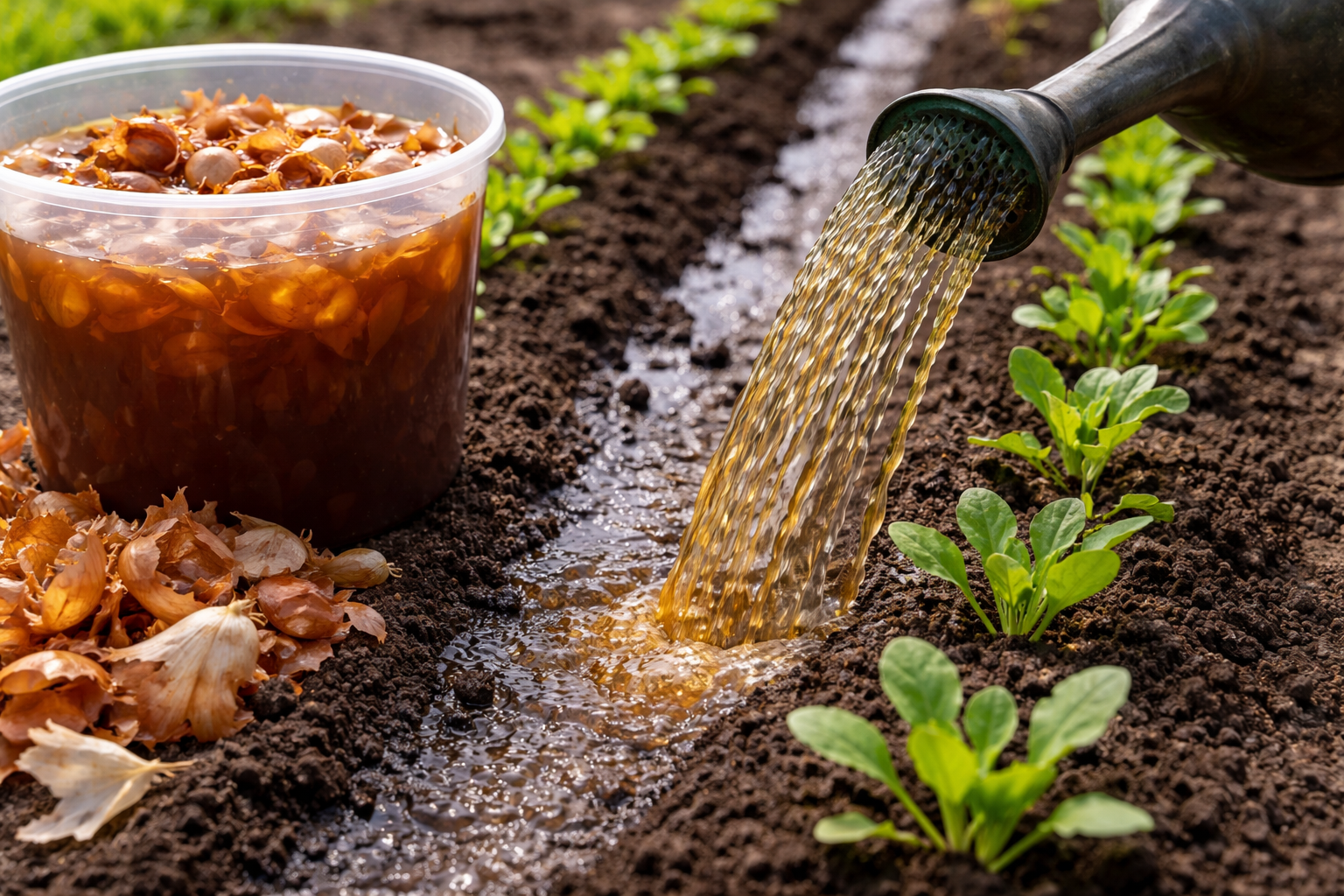 Sušené šupiny obyčejné cibule obsahují silný koktejl prospěšných prvků. Hlavní housle zde hrají fytoncidy – přírodní antibiotika, která inhibují růst patogenní mikroflóry. Země potřebuje po zimě jemné probuzení a organická zálivka je tím nejlepším způsobem, jak toho dosáhnout.
