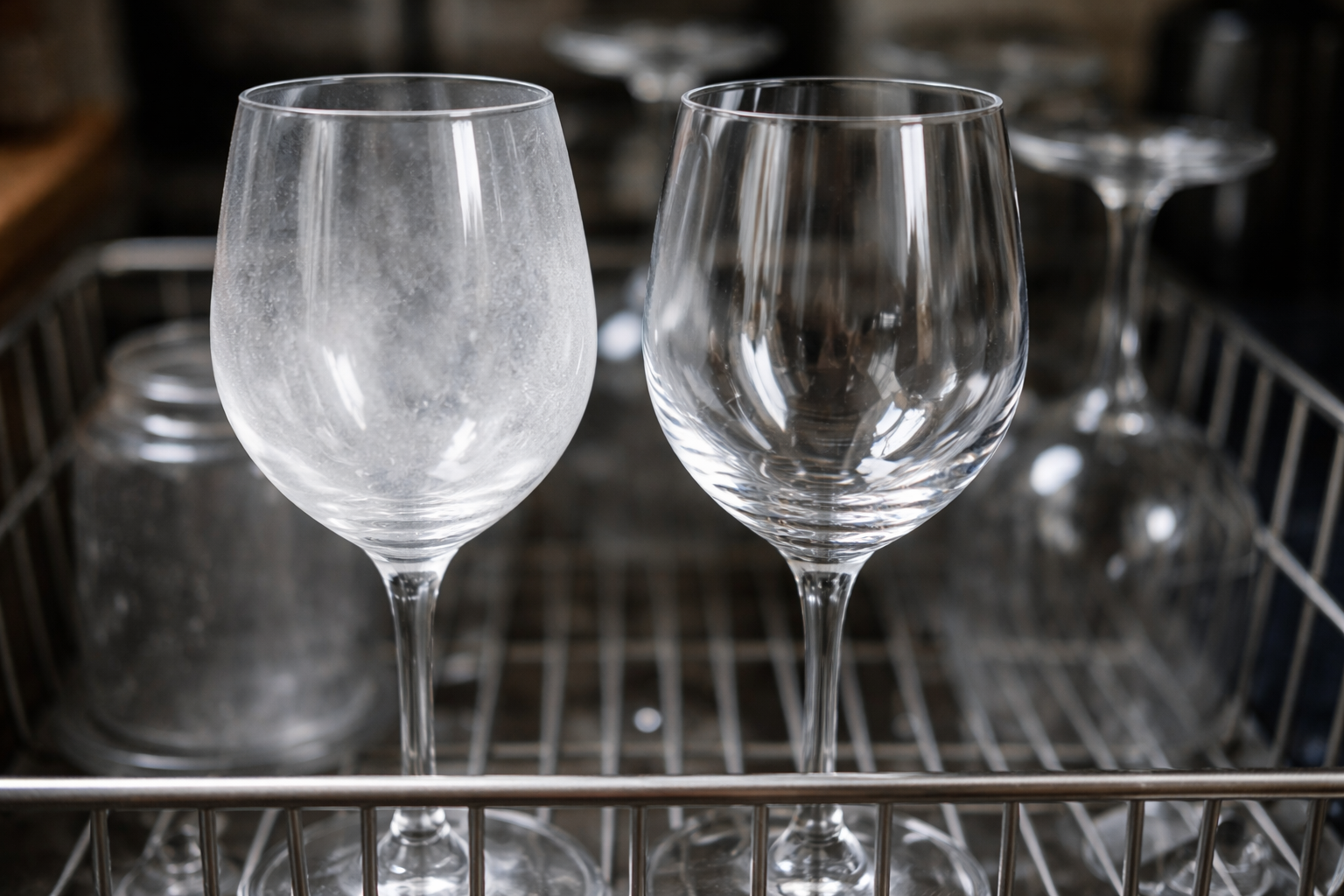 Problém nejčastěji spočívá v kvalitě vody a nesprávných pracích prostředcích. Okem nepostřehnutelné minerální usazeniny se postupně usazují na povrchu, takže sklo je matné.