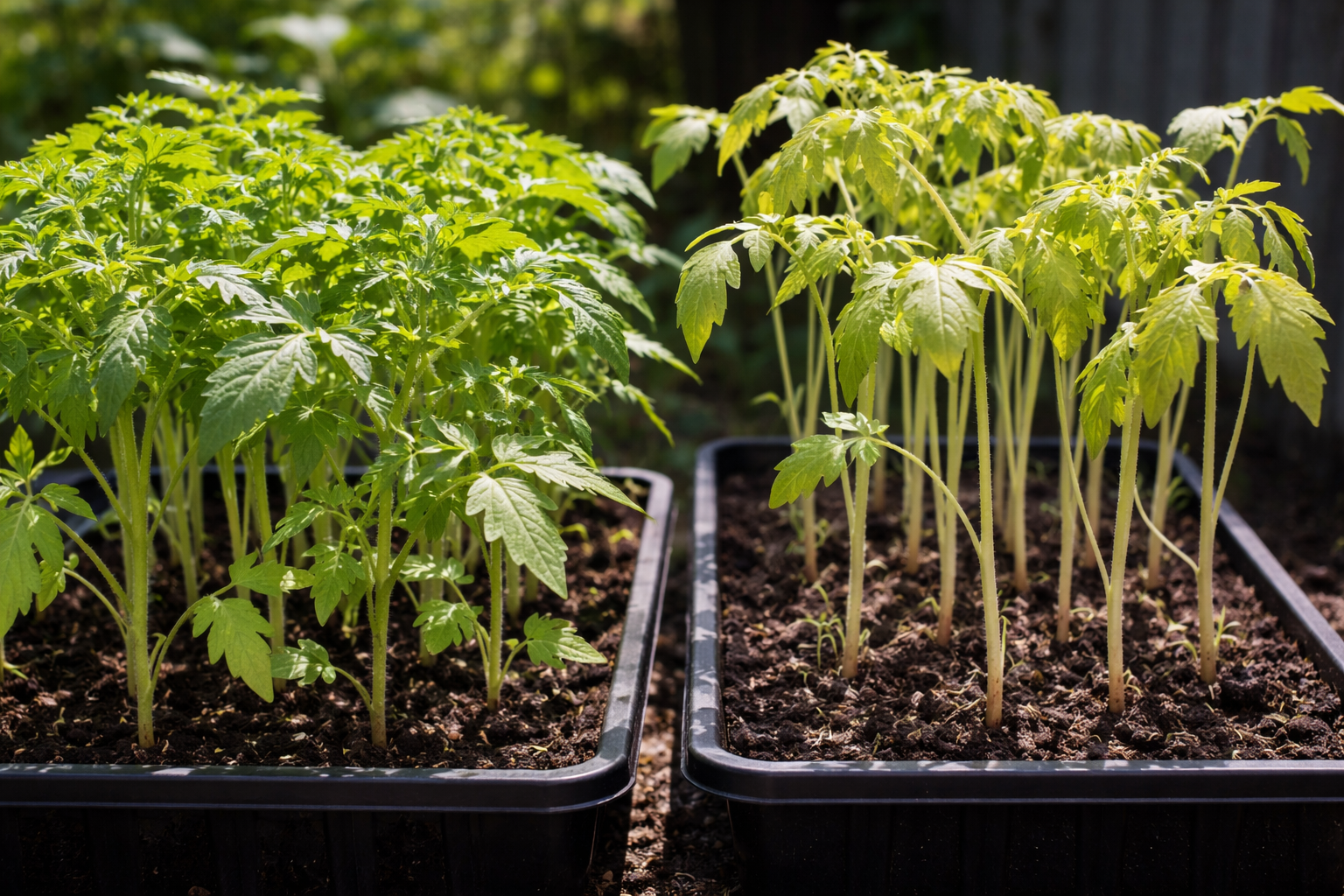 Rajčata jsou od prvních dnů života kriticky závislá na dostatku slunečního světla. Pokud sazenice stojí ve stínu nebo na parapetu s nedostatkem světla, okamžitě se spustí proces. etiolizace. Stonek se při hledání zdroje energie rychle prodlužuje, ztenčuje se a ztrácí pružnost. Tkáně mladé rostliny se stávají křehkými a kořenový systém se zcela přestane vyvíjet a všechny zdroje věnuje na vytažení vrcholu.