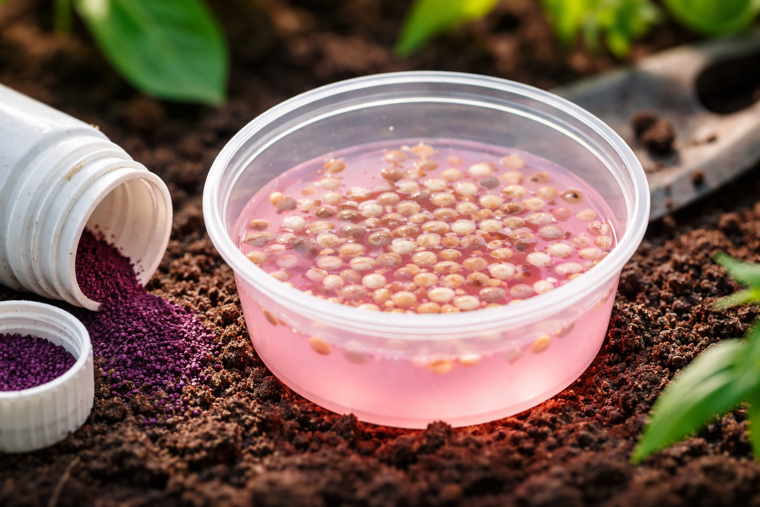 Světle růžová barva je ideální pro bezpečné dezinfekci osiva