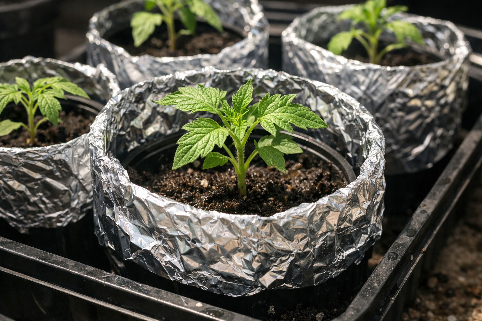 Můj osobní osvědčený trik proti přehřívání kořenů na jižních oknech je pevně zabalit plastové kelímky obyčejnou potravinářskou fólií lesklou stranou ven.