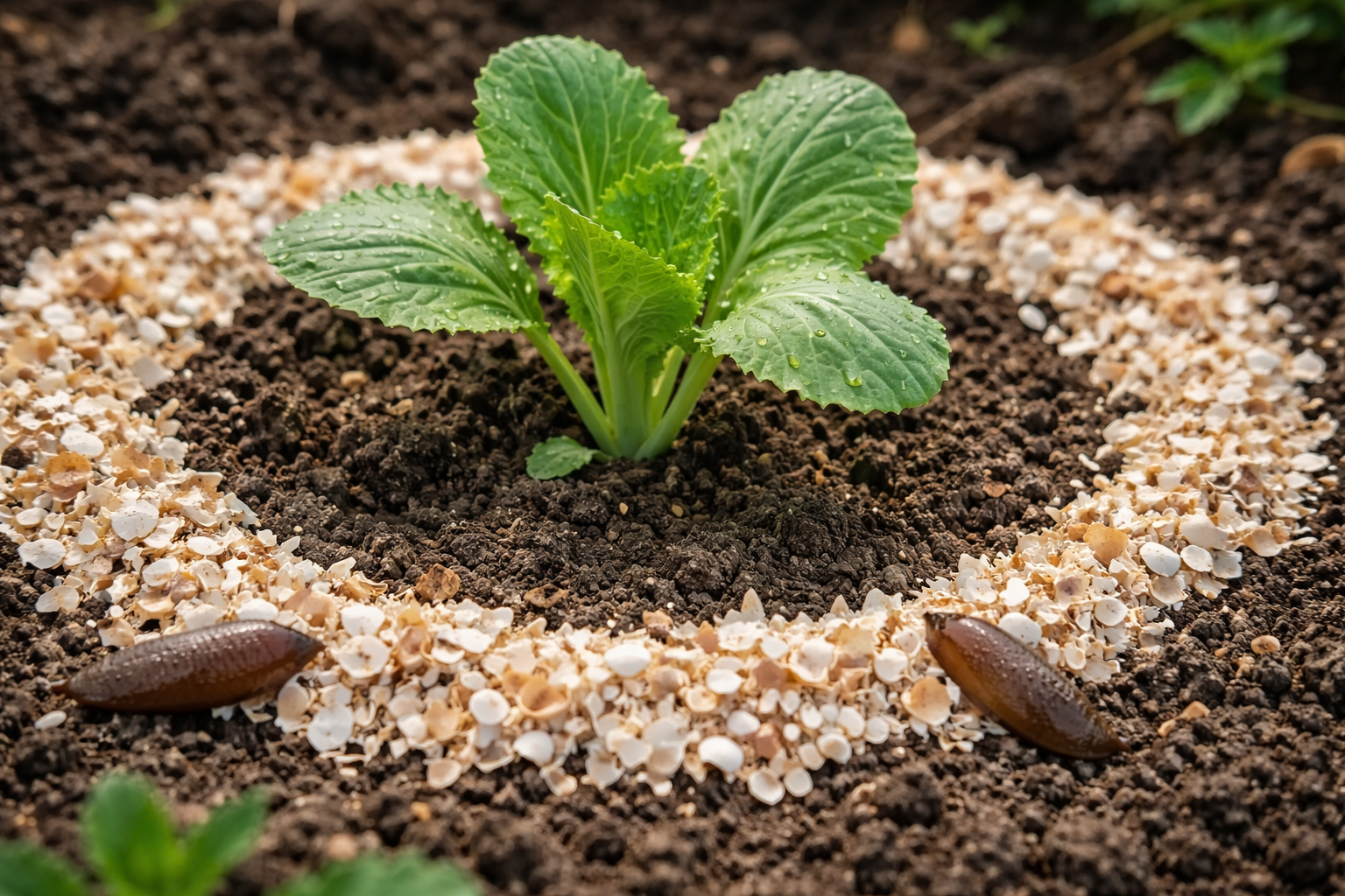 Vytvoření fyzické bariéry – je nejjistějším způsobem, jak škůdce zastavit. Tělo slimáka je velmi křehké, takže jakýkoli ostrý nebo hygroskopický povrch se pro něj stává nepřekonatelnou překážkou.