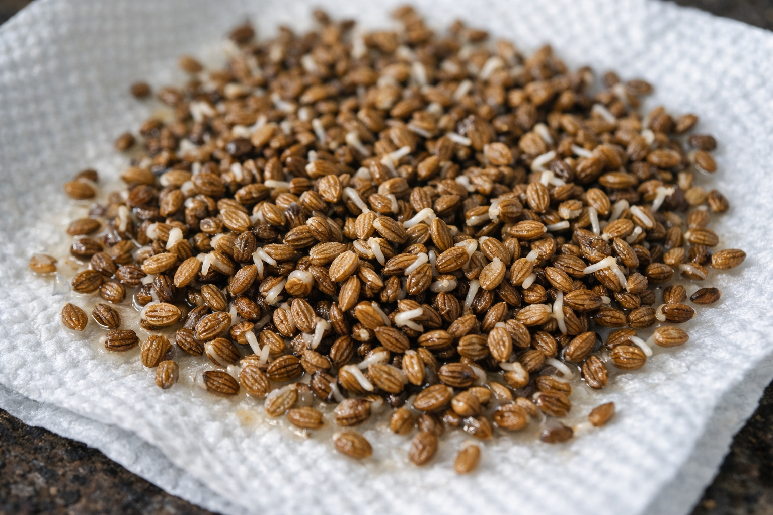 Jemné sušení na plátně po zalití navrací semenům jejich objem.