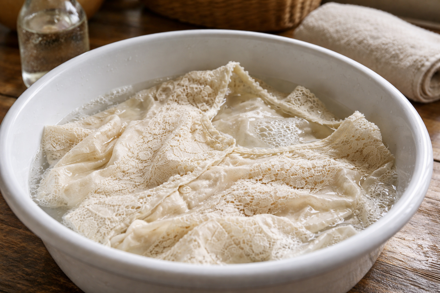 Hedvábí vyžaduje mimořádně jemné zacházení, proto je lepší nahradit agresivní vodní roztoky dlouhým větráním ve stínu.