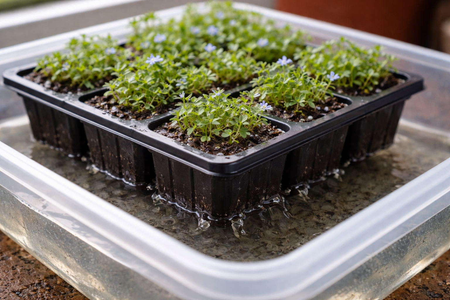 Mým hlavním tajemstvím péče je zcela opustit tradiční zalévání nad hlavou ve fázi prvních pravých listů.