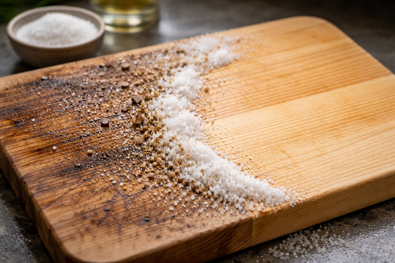 Dřevo má porézní strukturu. Standardní čisticí prostředky smyjí pouze povrchovou mastnotu, ale zárodky a šťávy z jídla se zachytí hluboko ve vláknech. Abychom nečistoty vytáhli, budeme potřebovat přírodní absorpční prostředky a potravinové kyseliny.