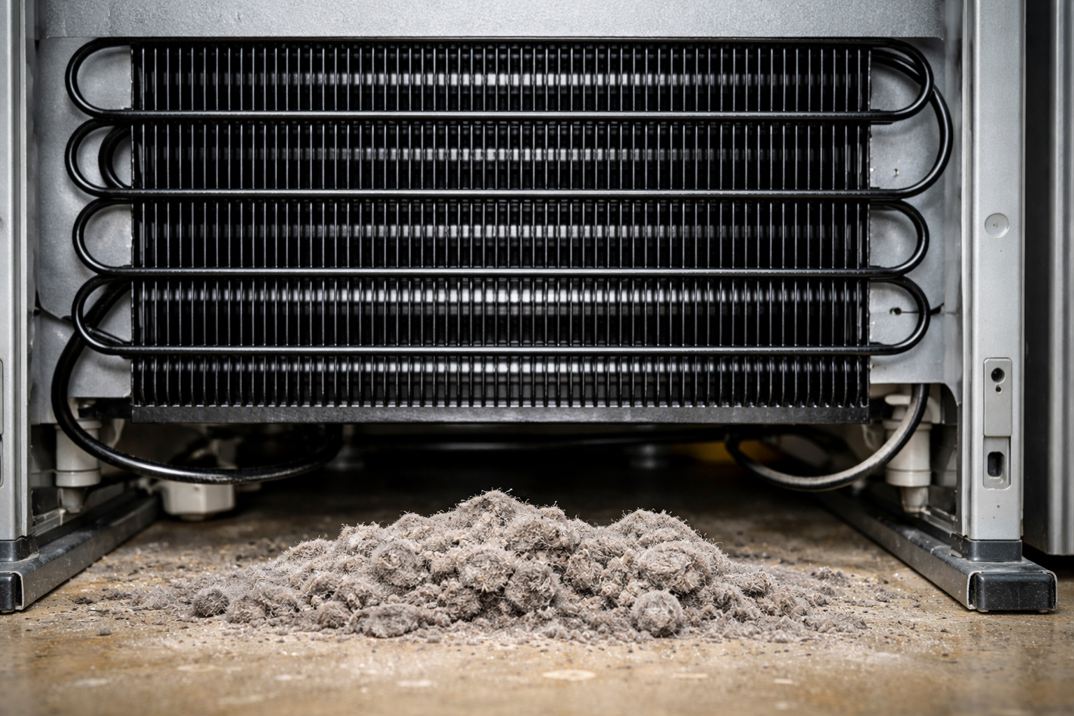 Efektivní provoz jakéhokoli chladicího zařízení je přímo závislý na procesu tzv. výměna tepla. V zadní části nebo ve spodní části zařízení je speciální kovová trubka zahnutá do hada – to je tzv. Kondenzátor. Touto částí je teplo z vnitřní komory odváděno ven. Když se na žebrech této části nahromadí žmolky a zvířecí chlupy, vytvoří se jakýsi „povlak“, který blokuje přenos tepla.