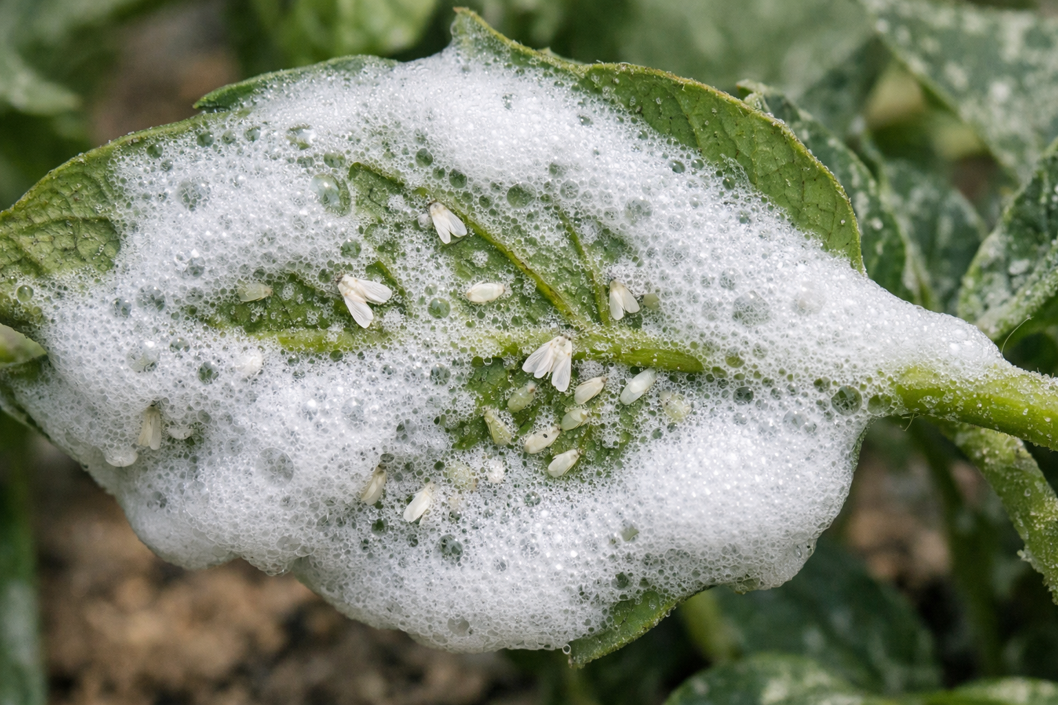 Pomocí houbičky pěnu hojně naneste na postižená místa rostliny.