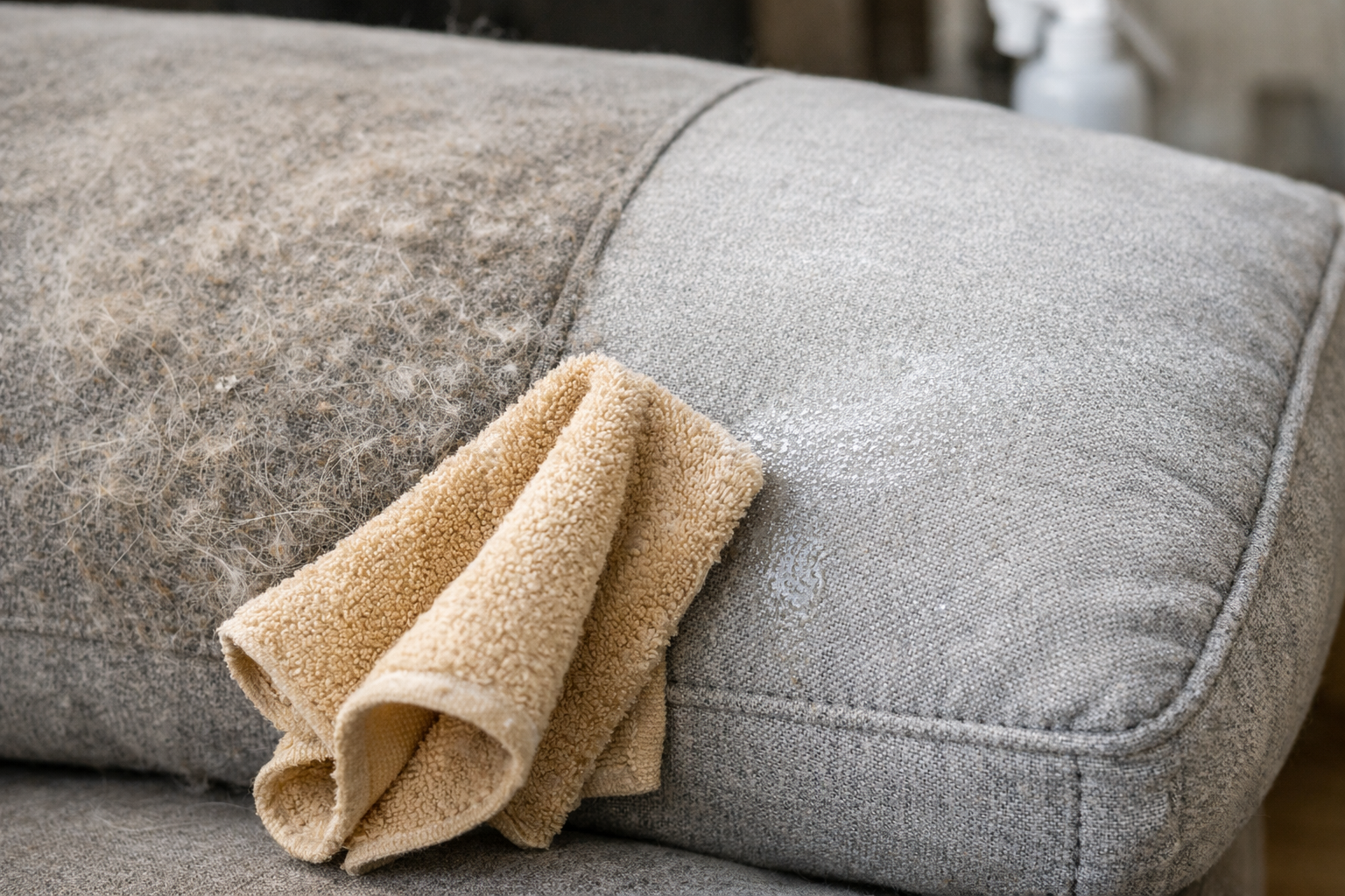 Důležitá rada: před velkým čištěním nezapomeňte tento domácí sprej vyzkoušet na nenápadné části čalounění, abyste se ujistili o odolnosti vašeho nábytku vůči barvivům.