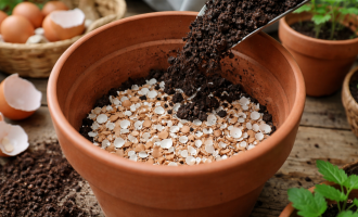 Vyplňte objem lehkou zeminou s přídavkem perlitu nebo vermikulitu.