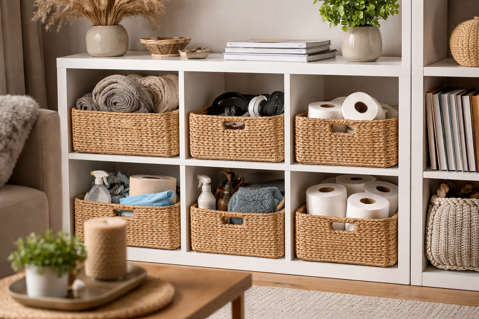 Optimalizace domácnosti začíná odstraněním nepořádku: čím méně nepotřebných předmětů se povaluje na volných plochách, tím rychleji a snadněji se utírá prach.