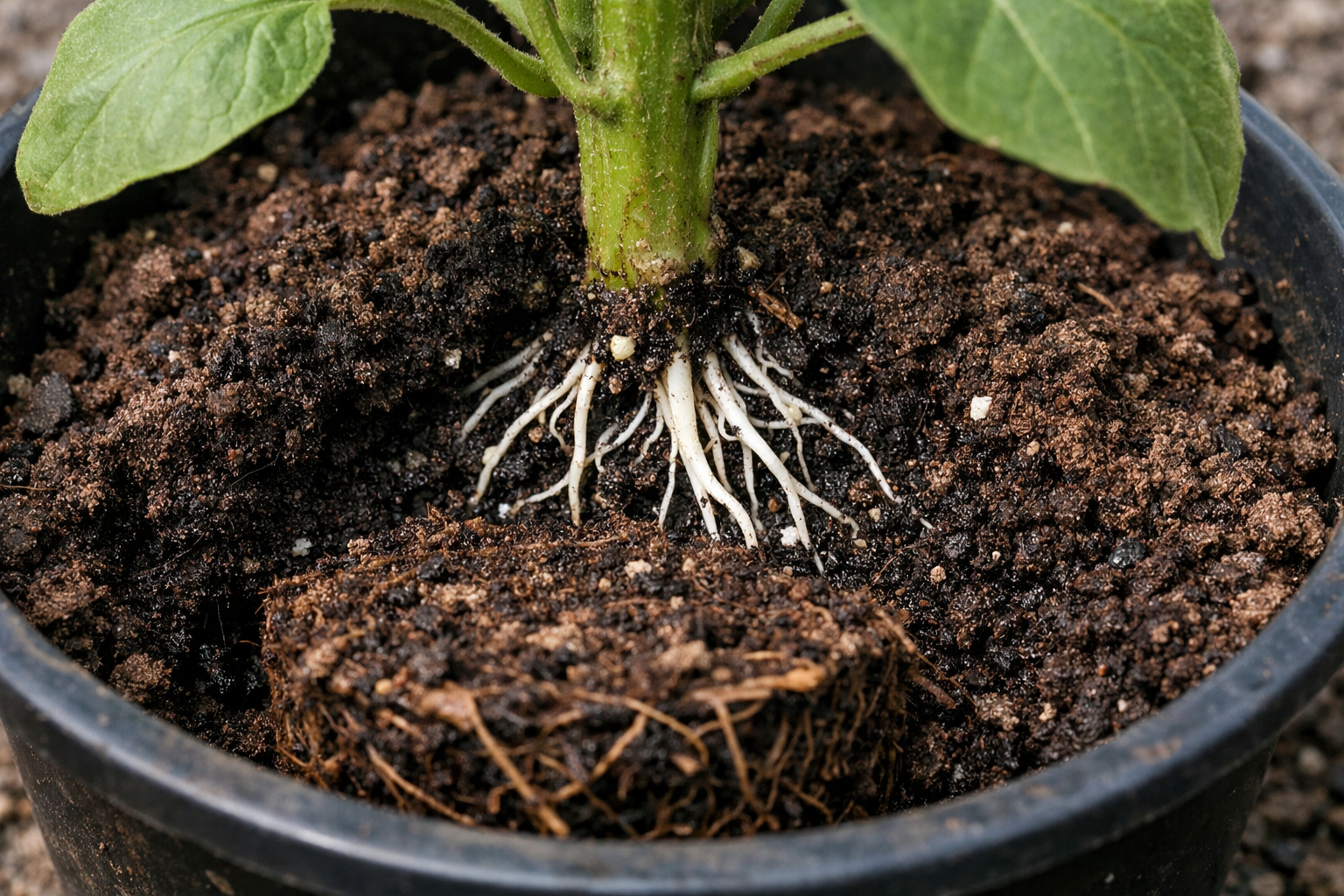 Zahradní zemina je příliš těžká a často zamořená patogeny, proto by měla být smíchána s rašelinou a perlitem.