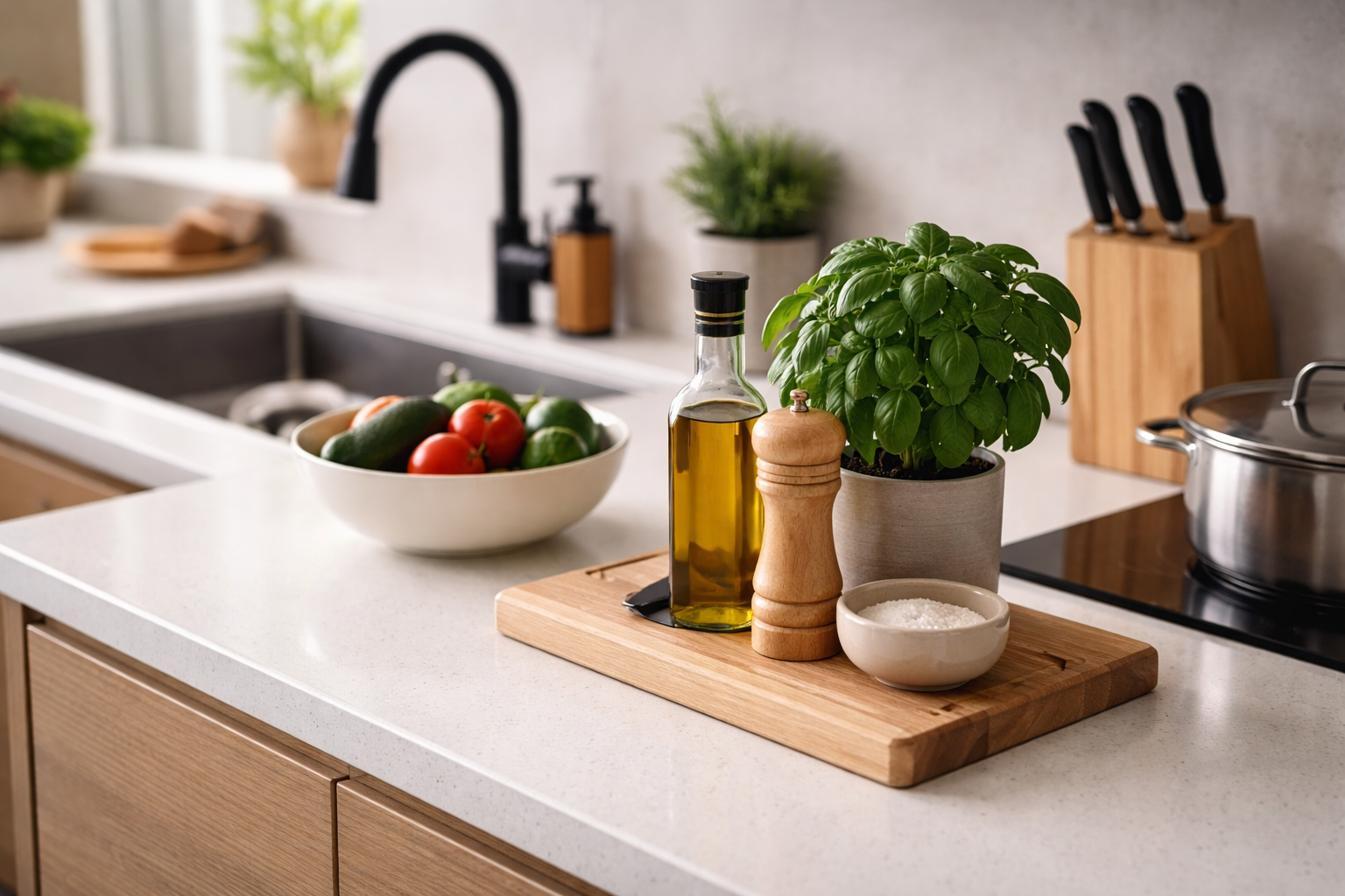 Tajemství: Odstraňte z kuchyňské desky pouhé tři předměty navíc a uvidíte, že vaření večeře už vám nebude připadat jako povinnost.