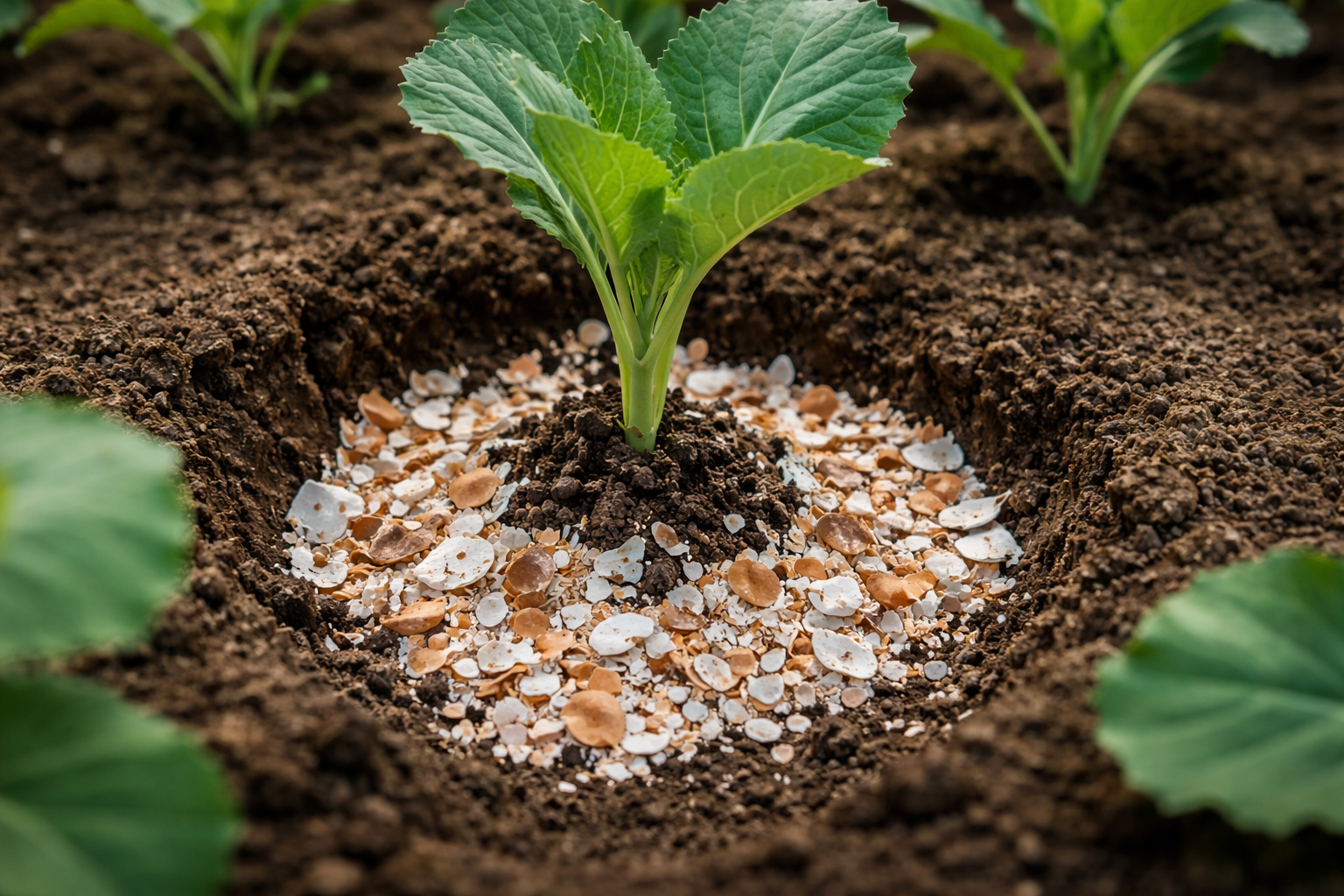 Příprava na výsadbu začíná vytvořením jamek. Do každé jamky je třeba přidat hrst organického prášku a důkladně ji promíchat s půdou tak, aby se kořeny nedotýkaly koncentrované vrstvy.