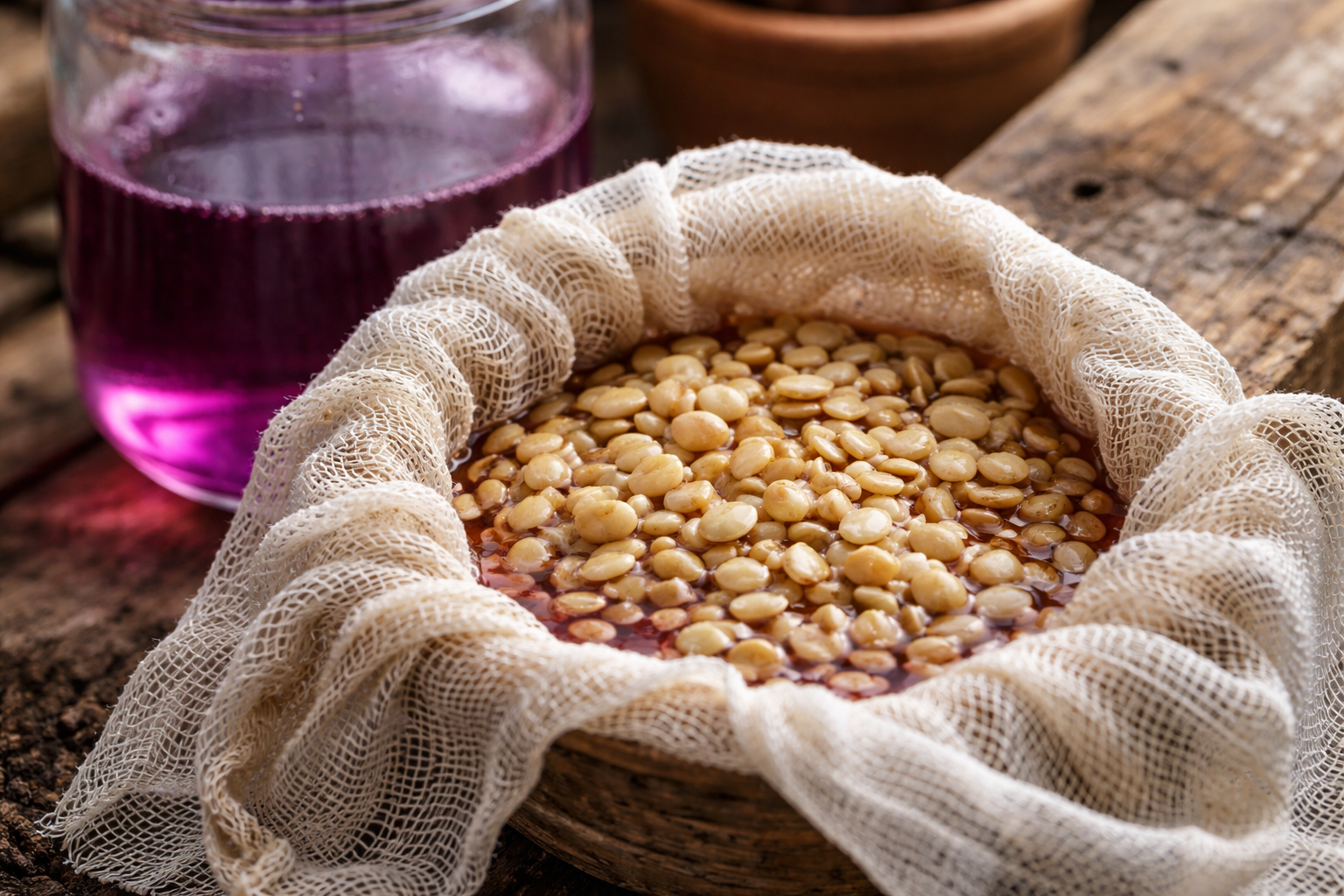 Ponořte gázový sáček se semeny do čerstvě připravené roztoku manganu