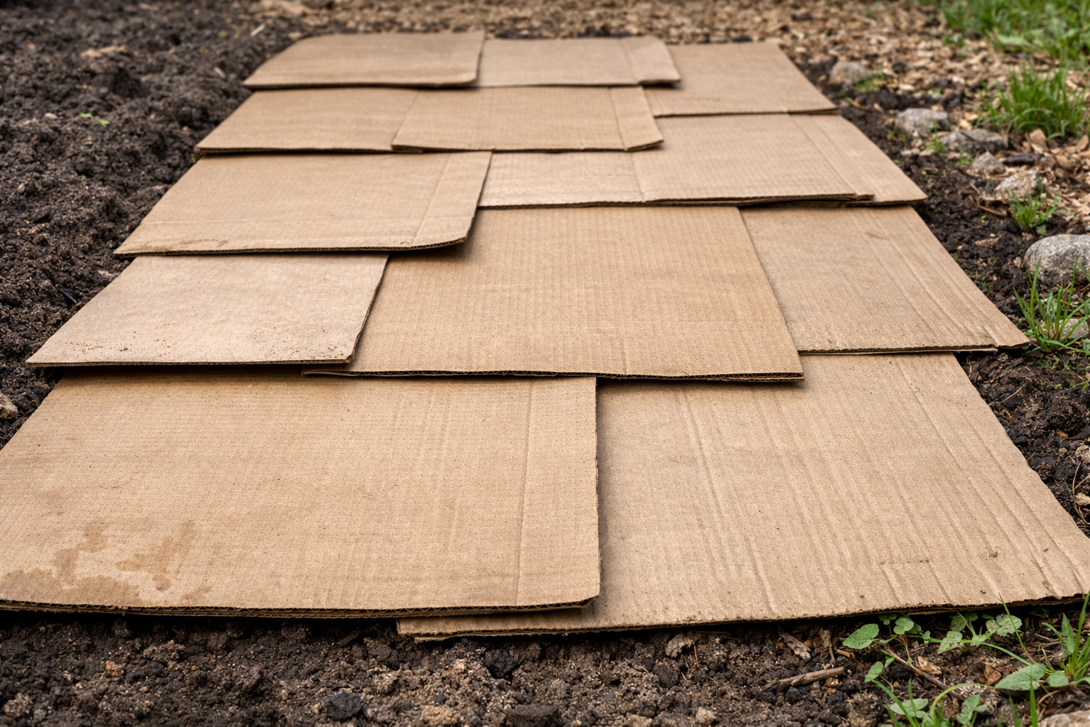 Za jednu z nejúčinnějších metod považuji použití obyčejné balicí lepenky. Jedná se o ekologicky šetrný materiál, který se během sezóny rozloží a přemění na hnojivo, přičemž zároveň potlačí i tak agresivní rostliny, jako je pýr nebo pampeliška.