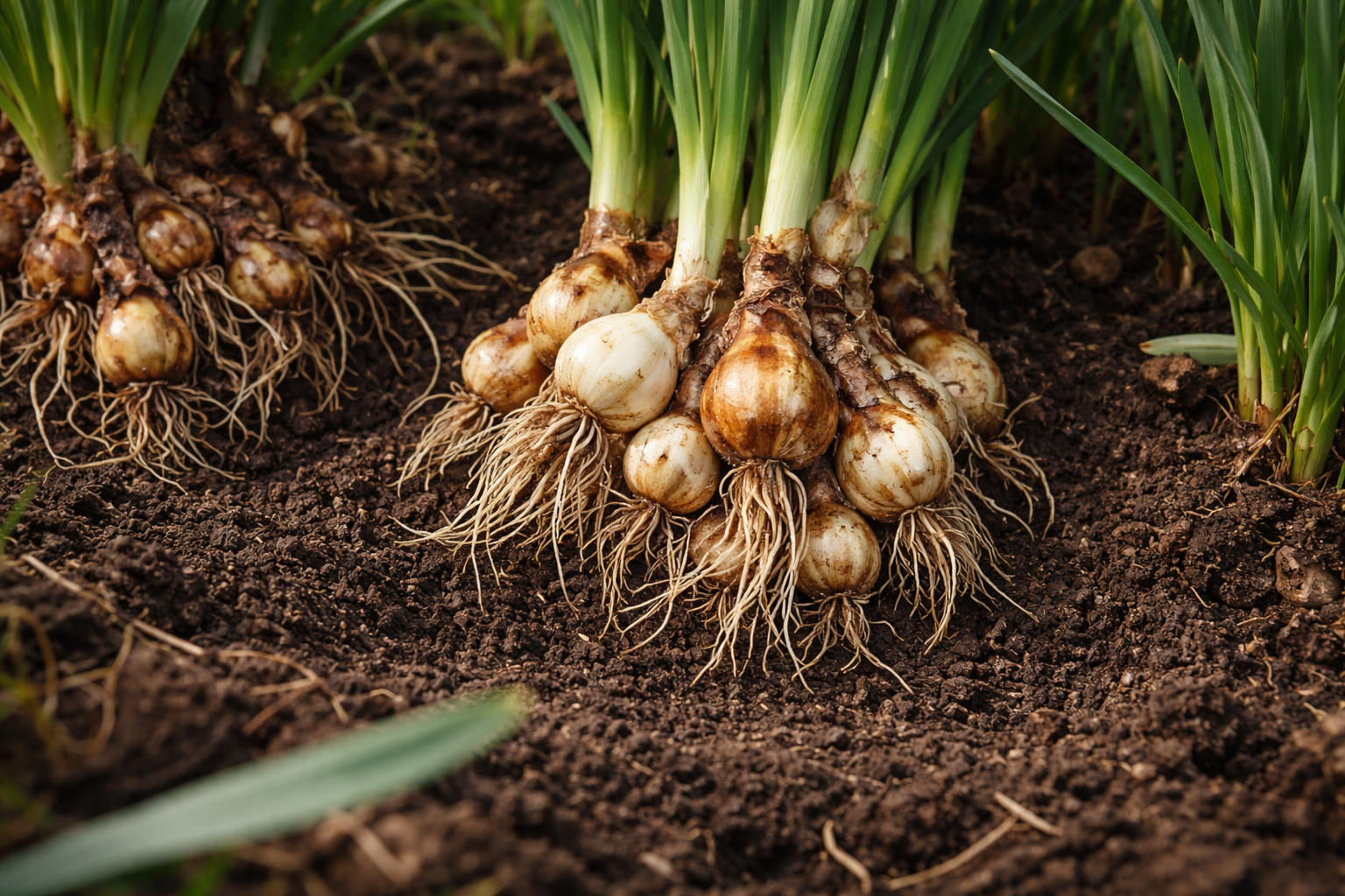 Tajná nuance: hnízda vykopejte až poté, co listy zcela zežloutnou a ulehnou, aby se všechny živiny stihly vrátit z nadzemní části do šupin.