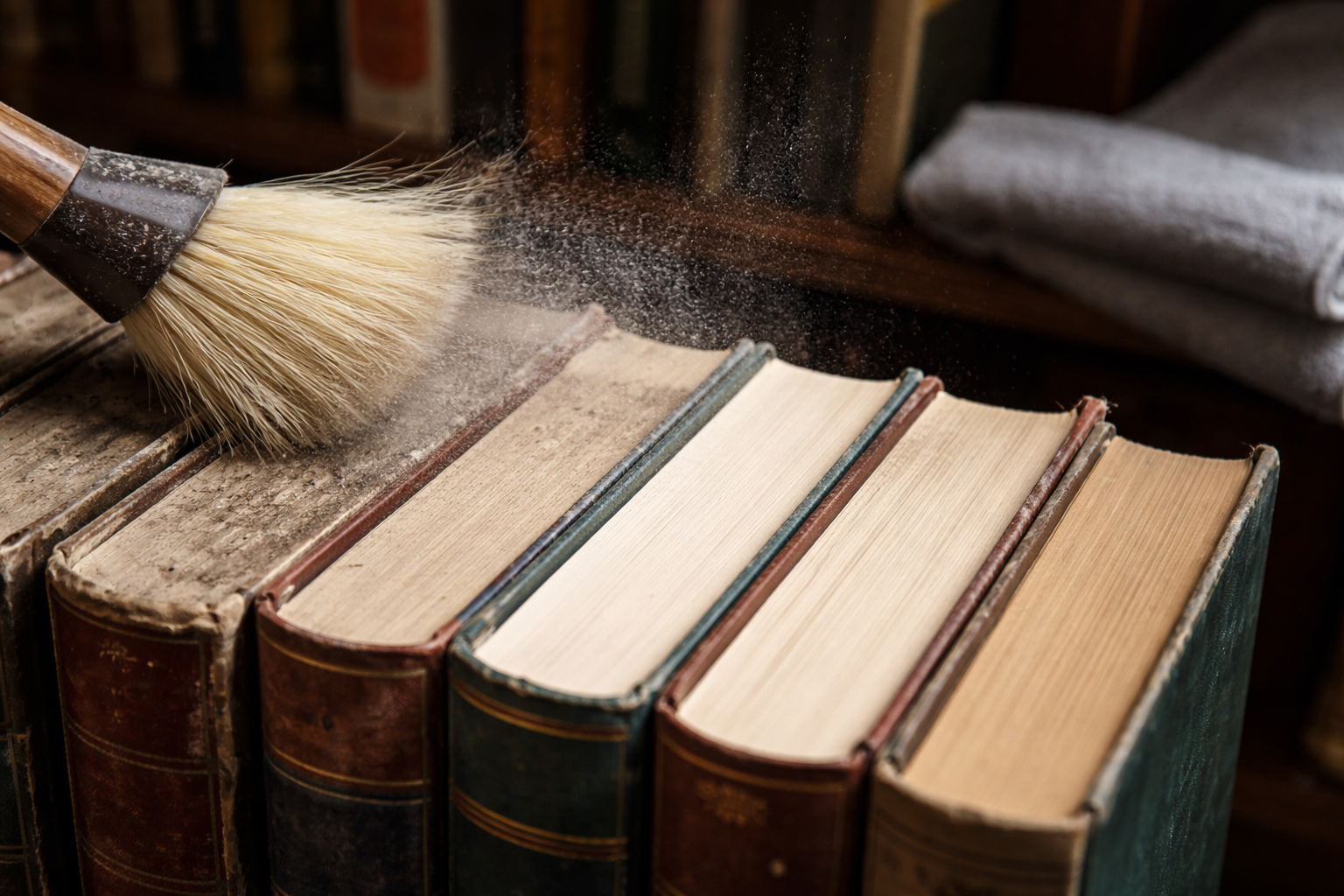 Knihovny přitahují obrovské množství prachu, který se z chlouby stává zdrojem alergií a nepříjemného zápachu. Za léta práce se soukromými archivy jsem našel několik osvědčených způsobů, jak rychle dosáhnout dokonalého vzhledu hřbetů a obálek, aniž byste museli používat drsné chemikálie.
