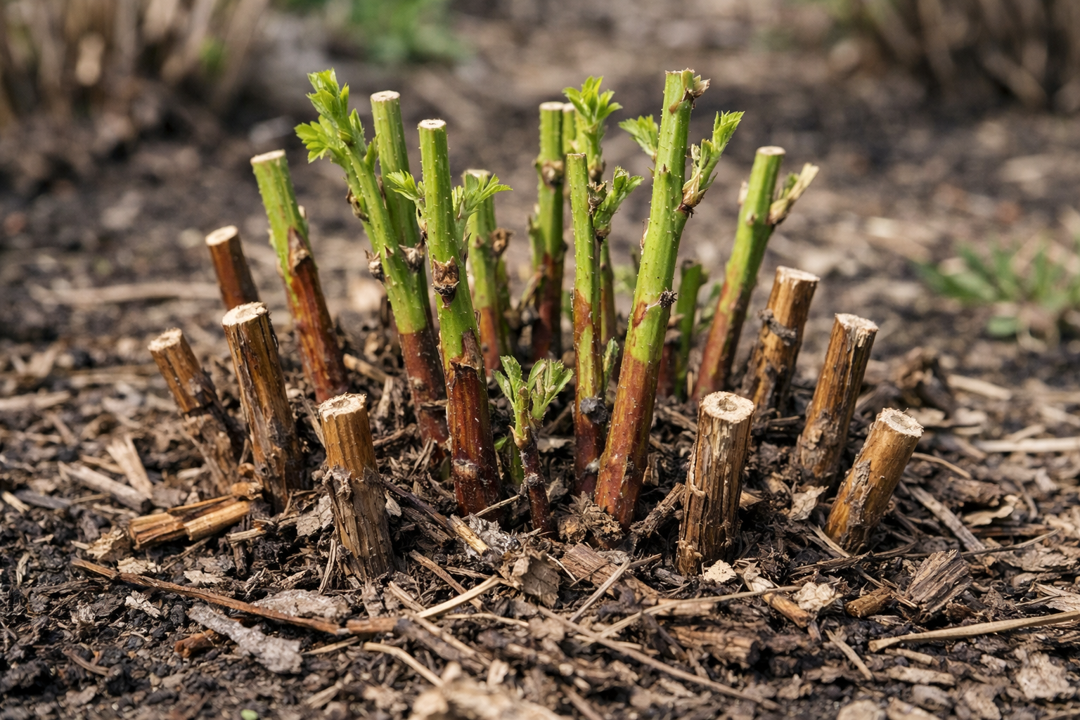 Tajnou nuancí zkušených zahradníků je nejen zkracovat vrcholky, ale vyřezávat všechny poškozené větve přísně na úrovni půdy, aniž by zůstaly vyčnívající pahýly, které v sobě často skrývají larvy maliníků a spory nebezpečných hub.