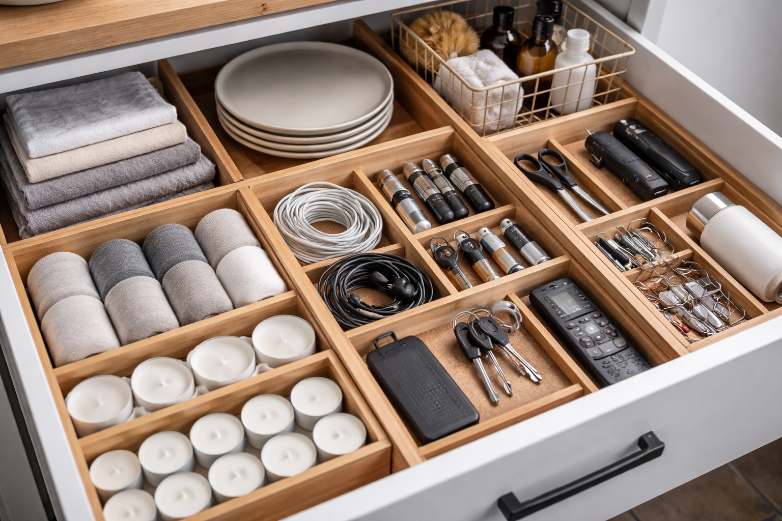 Do každého pokoje umístěte pěkný proutěný koš, kam můžete před spaním rychle vysypat všechny drobné předměty.