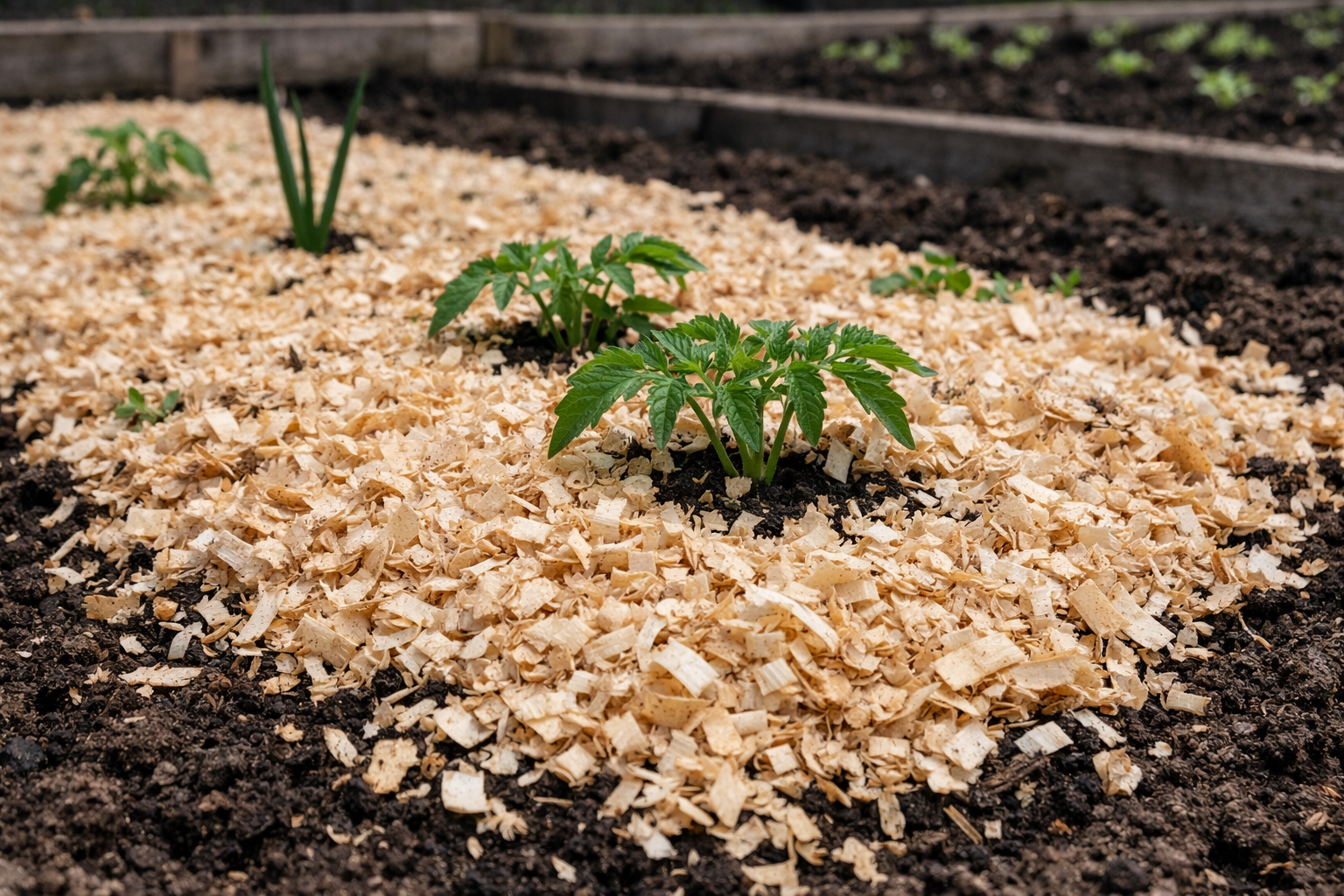 Hlavní tajemství úspěchu spočívá v povinné přípravě materiálu. Čerstvé dřevěné hobliny aktivně čerpají dusík ze země, proto je třeba je před použitím namočit do silného roztoku močoviny nebo důkladně promíchat s vyzrálým kompostem.