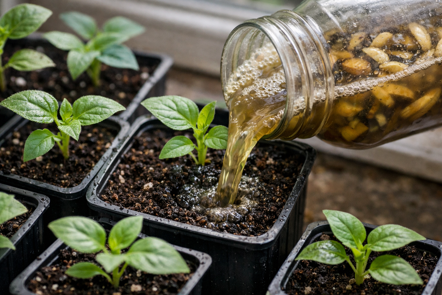 Pravidelná aplikace takového přírodního koktejlu vytváří v rostlinách silnou imunitu před nadcházejícím přesazením do volné půdy nebo skleníku. Vyvinutý kořenový systém a zesílený stonek zaručují snadnou adaptaci na trvalé stanoviště a bohaté plodenství. Sazenice dostanou z jednoduchých a cenově dostupných ingrediencí vše, co potřebují k harmonickému růstu.