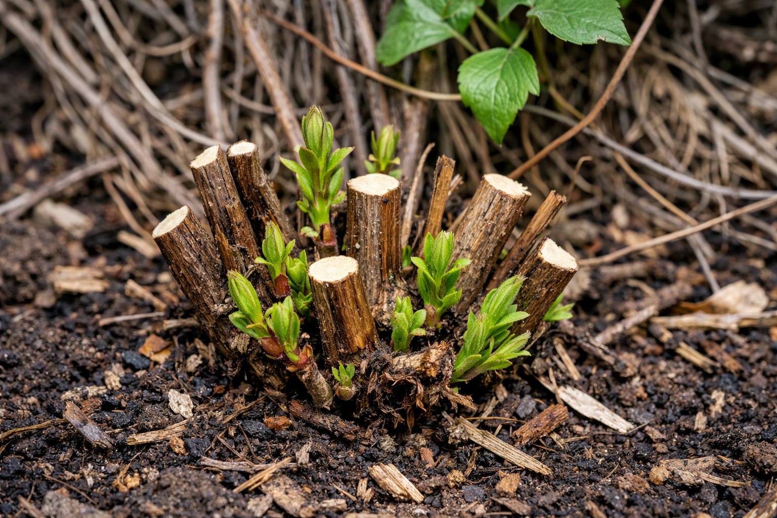 Odstraněním starých a nemocných výhonků se vytvoří prostor pro vývoj silných mladých výhonků.