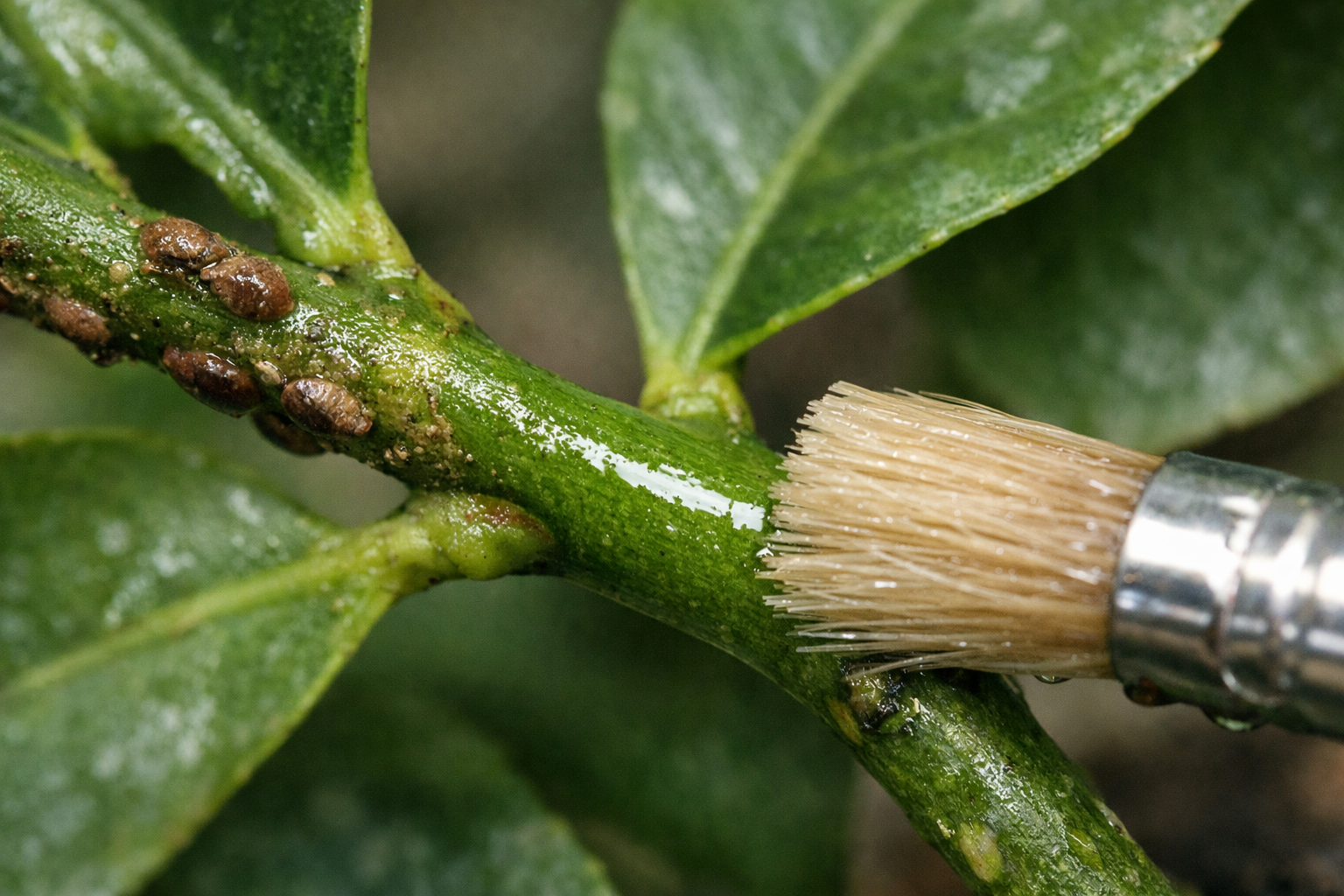 – Izolujte napadený citron od ostatních rostlin. – Připravte si roztok silného alkoholu nebo vodky a měkký kartáč. – Jemně otřete každou větev a věnujte pozornost místům, kde jsou listy připevněny. – Pomocí starého zubního kartáčku fyzicky vydrhněte listí. skořápky hmyz.