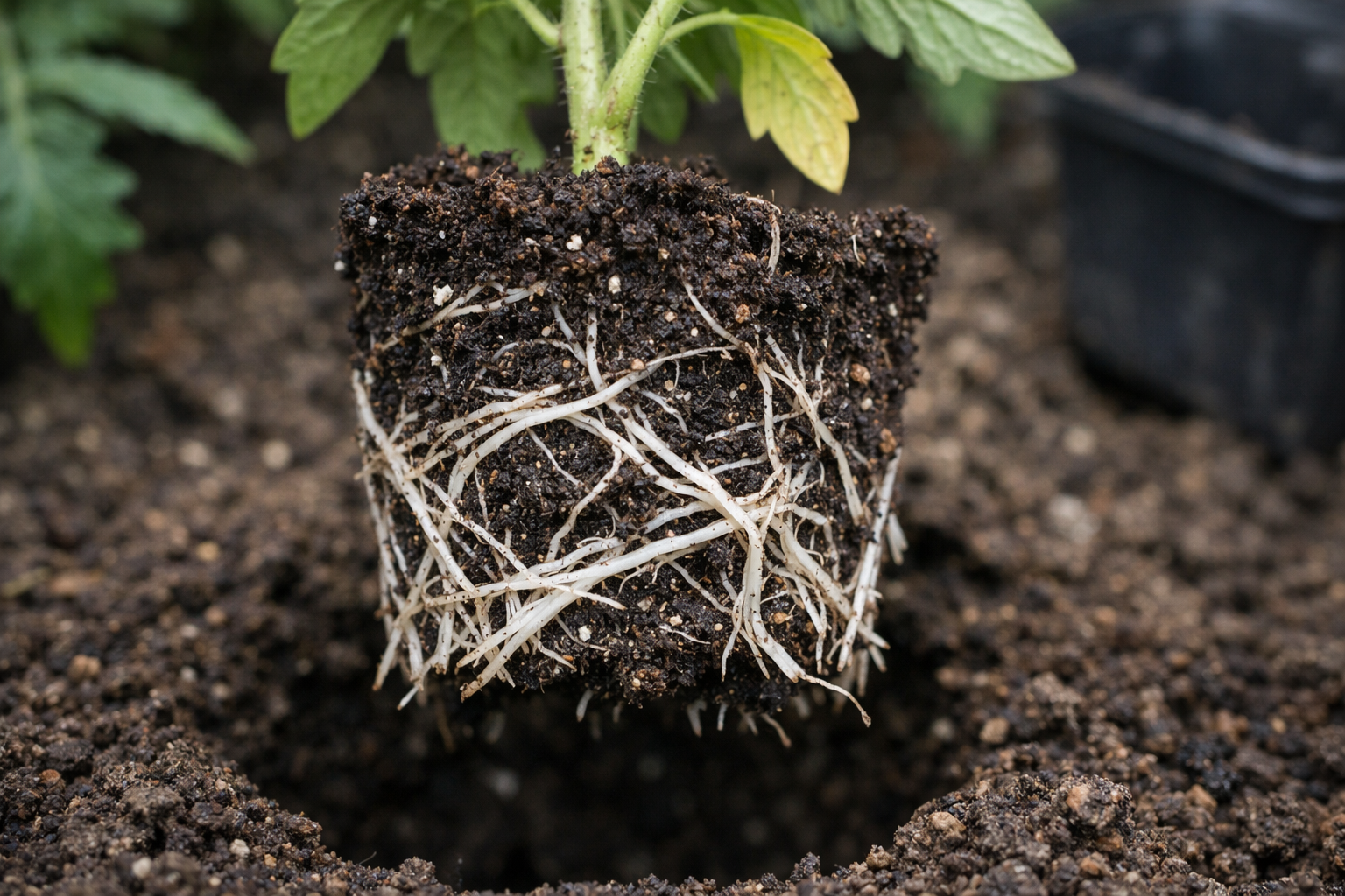 Opatrně vyjměte jednu sazenici z kelímku a prohlédněte kořeny.