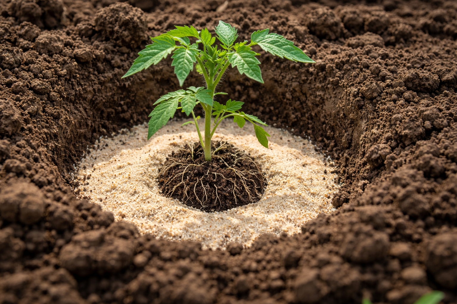 Jarní výsadba rajčat do husté jílovité půdy se často stává katastrofou pro kořenový systém, který se v chladné vlhkosti dusí a zahnívá. Po mnoho let jsem kvůli těžké půdě přicházel o některé mladé rostliny, dokud jsem nezavedl jednoduchou metodu pískových kapslí, která okamžitě vyřeší problém s výměnou vzduchu a zaručeně sazenice zachrání.