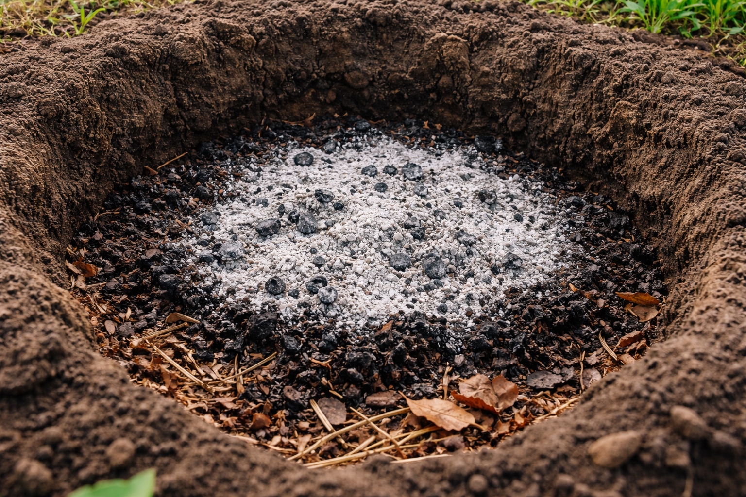 Hlavní tajný odstín spočívá v přidání dřevěného popela přímo do organického polštáře, odkyseluje půdu a dává silný start kořenovému systému.