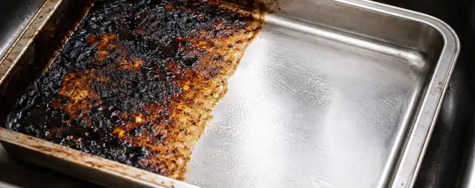 Zaschlá mastnota a černá krusta na plechu na pečení mnoho lidí vyděsí, ale jejich drhnutí kovovým flanelovým hadříkem je chyba, která nepřilnavou vrstvu zničí.